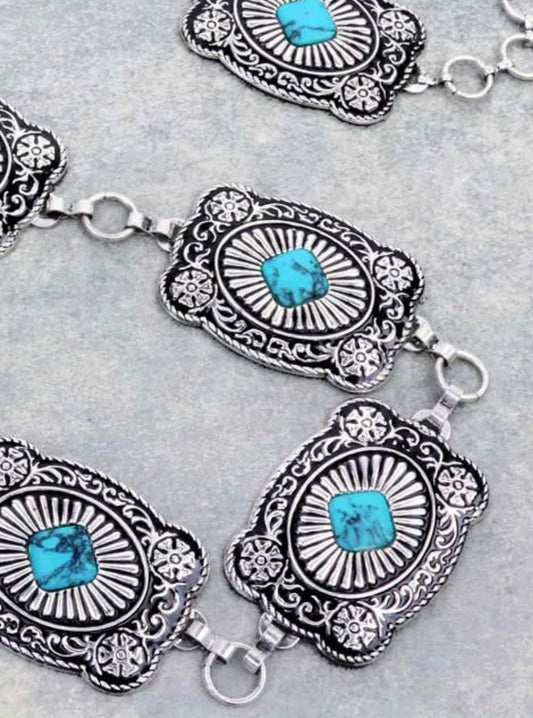 Turquoise Concho Belt S/M 41” long L/Xl 55”long