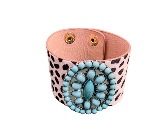 Turquoise Stone Animal Leather Print Bracelet