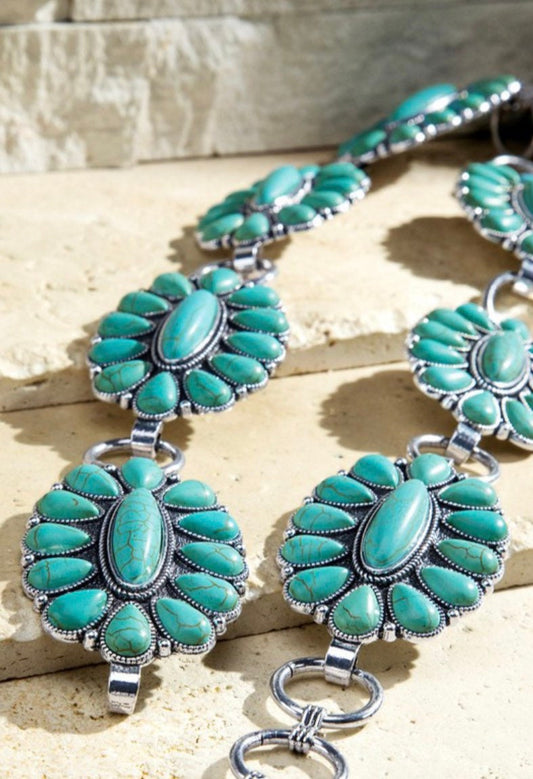 Copper Turquoise Concho Belt S/M 44” longL/Xl 55” long
