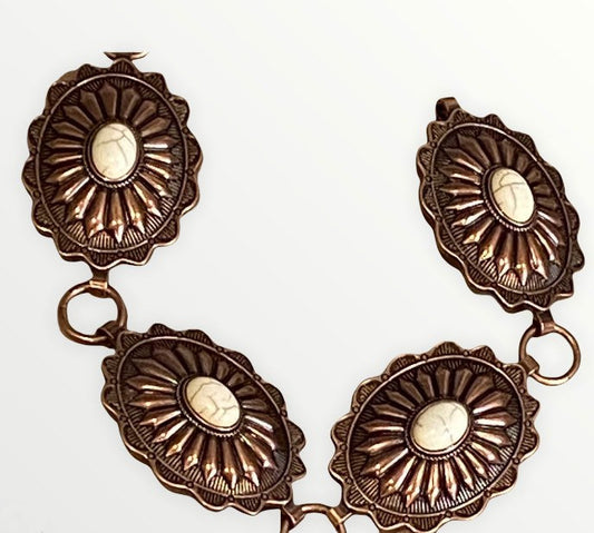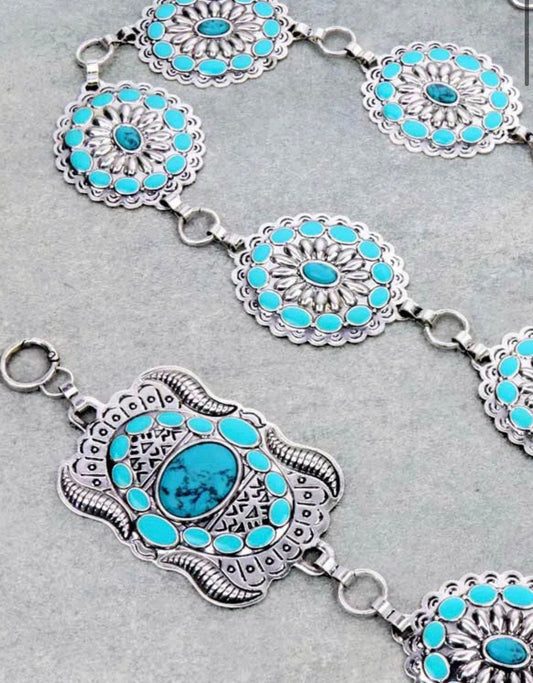 Copper Turquoise Concho Belt S/M 44” longL/Xl 55” long
